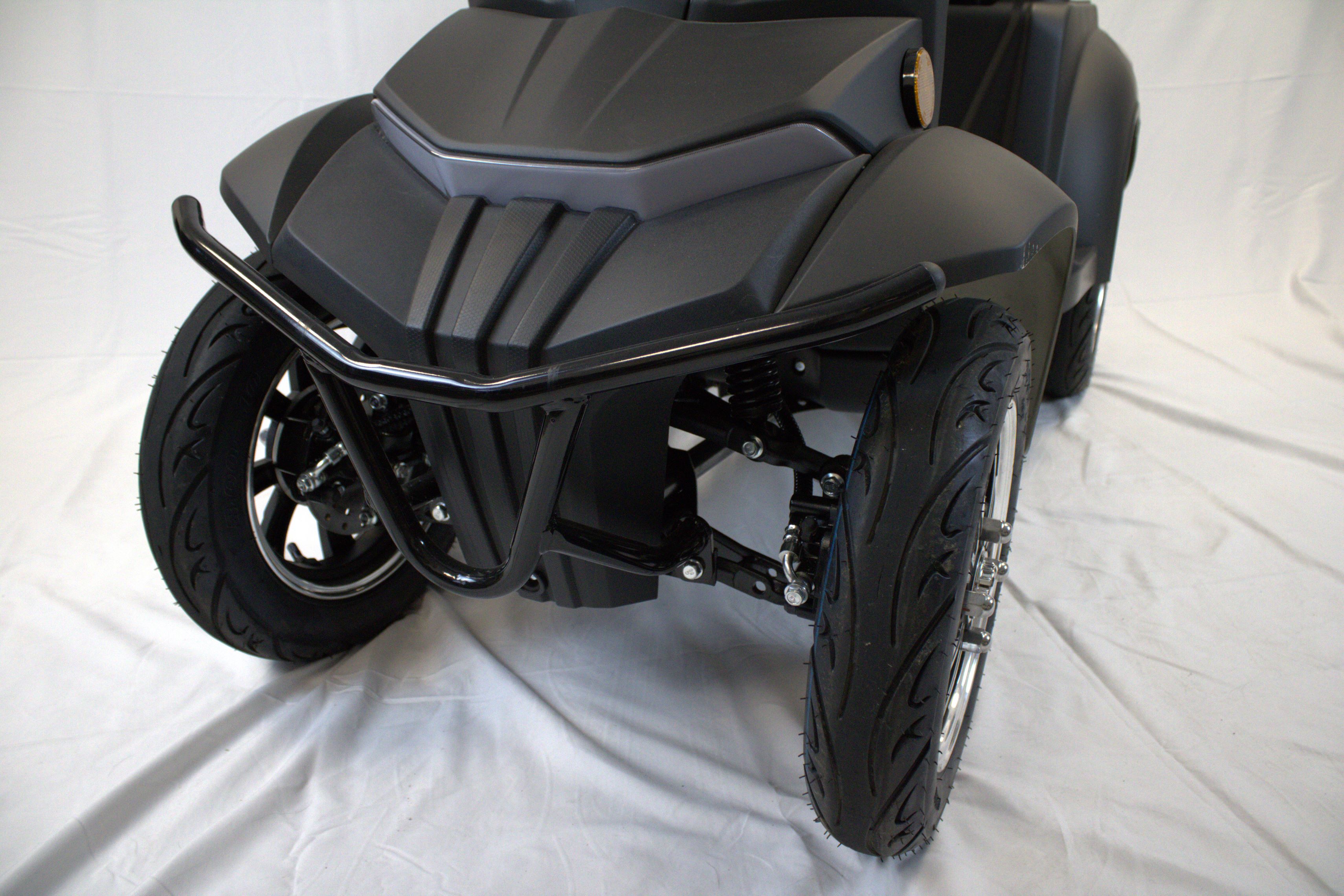 Dieses Elektromobil ist eine Alternative für jüngere Personen mit Erfahrungen beim Führen von Motorrollern, Motorrädern oder Quads. Das zulassungsfreie E-Quad Trinidad ist bis 25 km/ schnell. Die Bedienung erfolgt über Gasdrehgriff sowie zwei Handbremsen. Der Lithium-Akku ist entnehmbar und kann somit extern geladen werden.Das vierrädrige E-Mobil zählt zur Fahrzeugklasse leichtes Straßenquad und erfordert mindestens einen Mopedführerschein. Die Benutzung ist laut StVO nur auf Straßen zulässig.