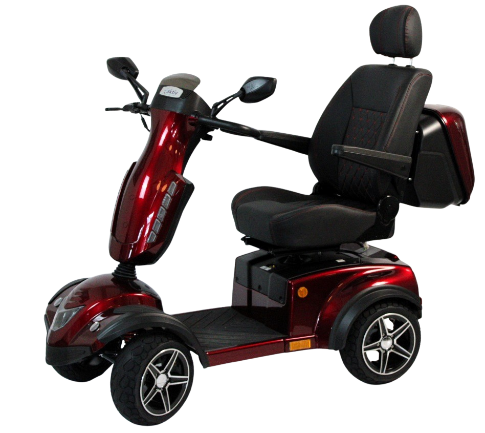 Neu im Programm: Unser Modell Pöhl - ein moderner Seniorenscooter mit interessanter Ausstattung wie Sitzheizung, schlüsselloser Start-Stopp-Funktion, umfangreichem Multimedia-Display und USB-Anschluss wartet auf seinen Einsatz. Wir rüsten dieses Elektromobil auf Wunsch für höhere Batterie-Kapazität mit Lithium-Akkus aus. Mit großen Rädern und breiter Bereifung zeichnet sich das Modell Pöhl durch hohe Fahrstabilität aus, das Befahren von Absätzen oder unebenen Untergründen meistert er sicher. Details wie eine Heckbox, Halterungen an der Innenverkleidung für ein Trinkgefäß sowie kleine Taschen runden den erhöhten Nutzwert dieses Elektromobils ab.