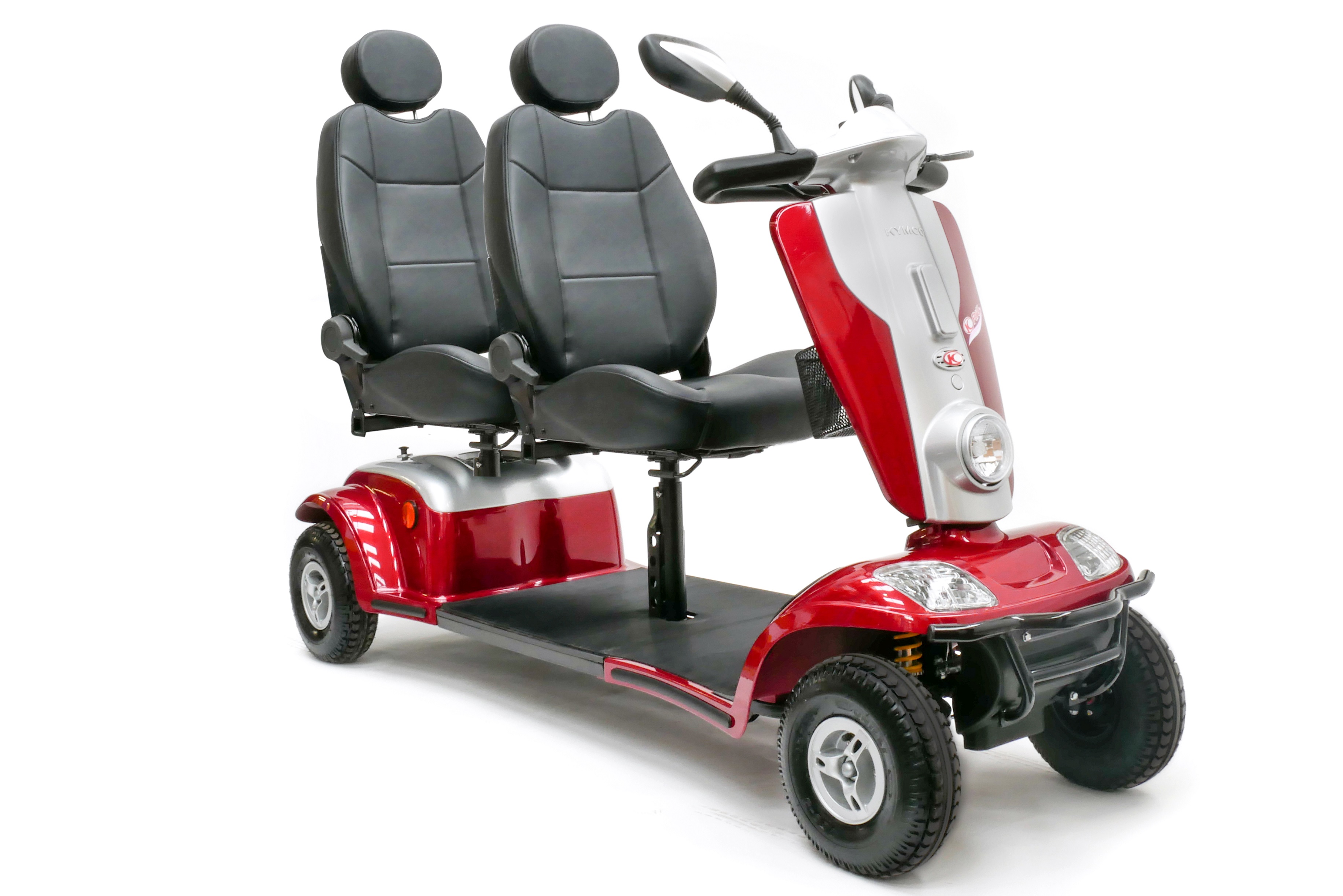Das Modell Tandem der Marke KYMCO bietet Platz für zwei Personen. Die Anordnung der Sitze hintereinander hat den Vorzug, dass reichlich Platz für eine bequeme Körperhaltung beider Mitfahrenden vorhanden ist. Weiterhin wird von diesem zweisitzigen Seniorenmobil durch die geringe Breite nur der Verkehrsraum eines vergleichbaren Einsitzers in Anspruch genommen. Das Tandem wird in den Ausführungen 6 km/h bzw. 12 km/h angeboten.