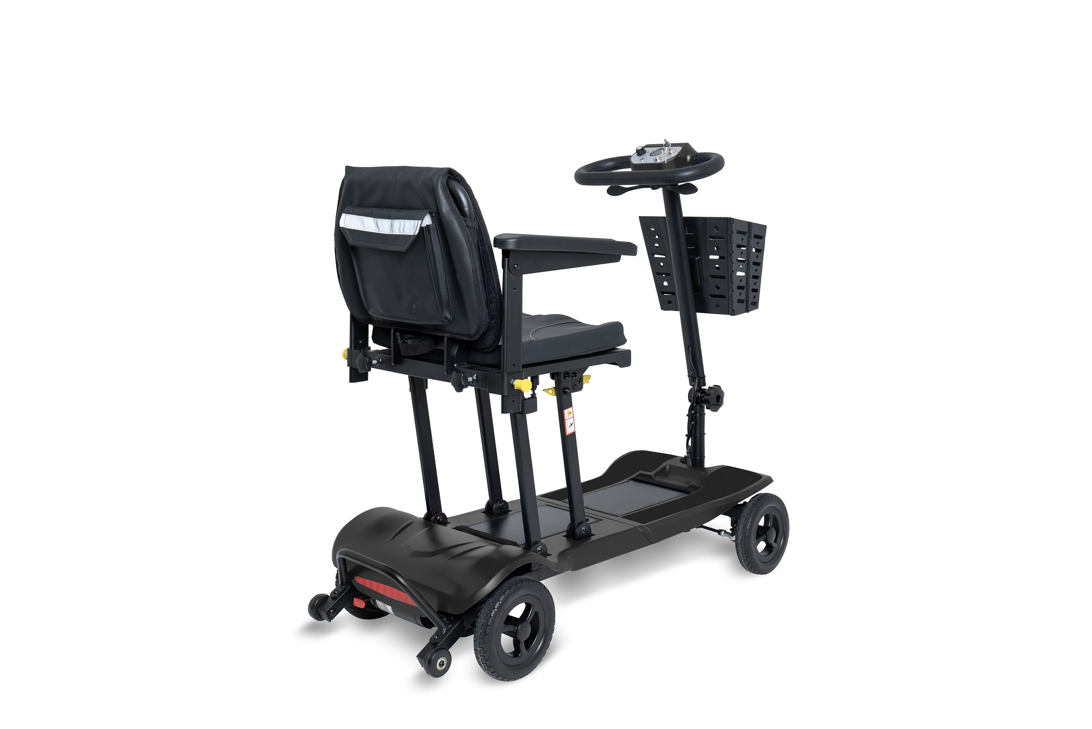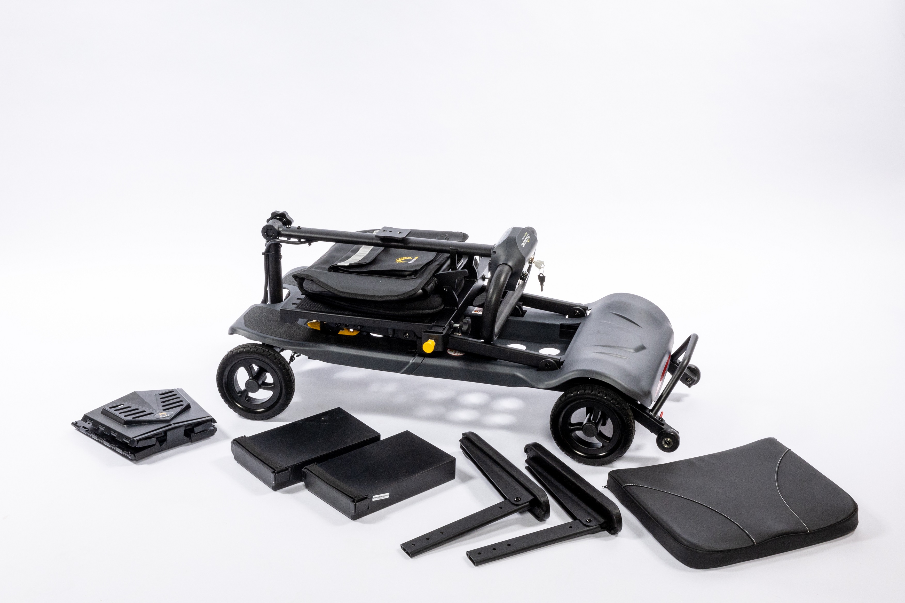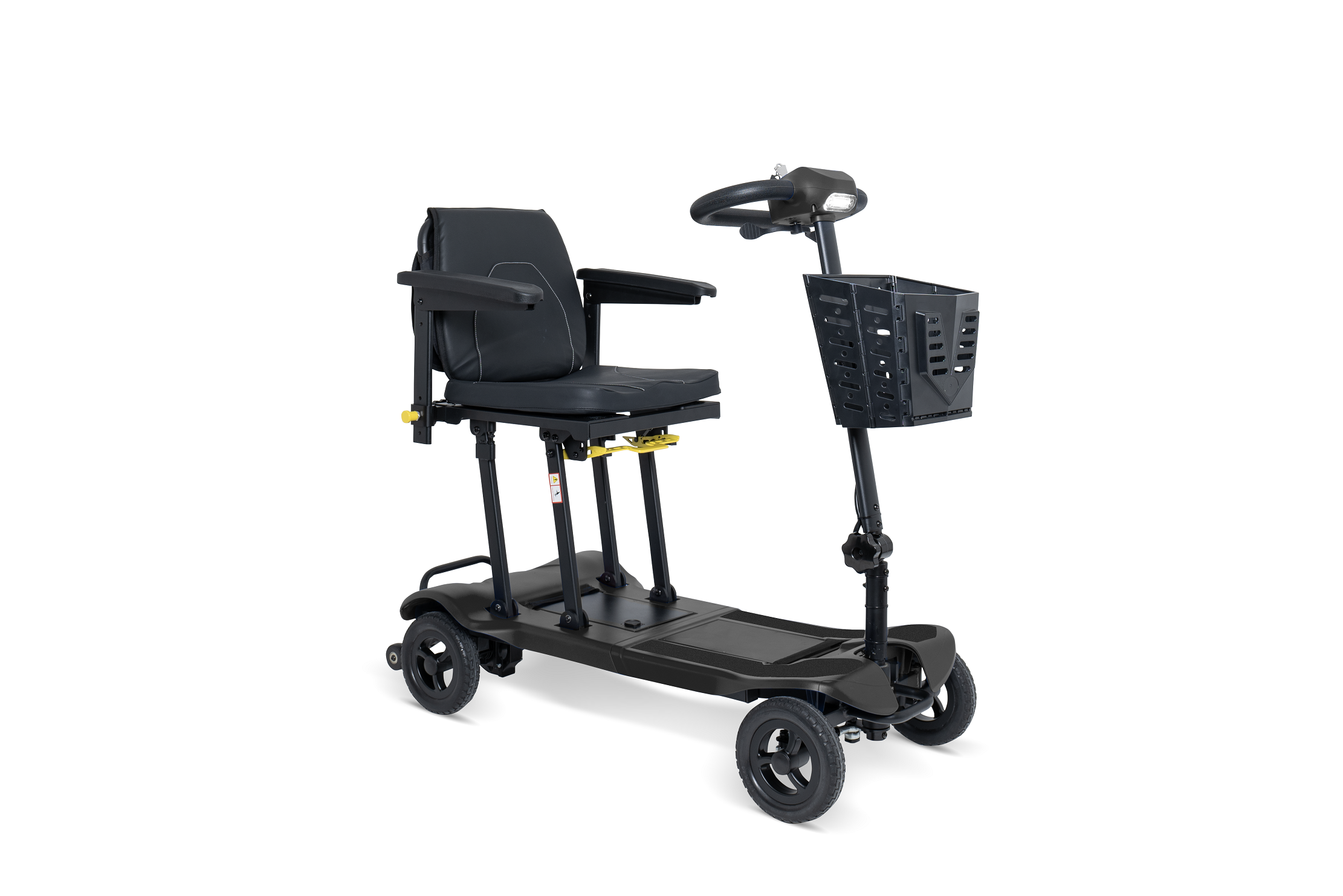 Unser Leichtgewicht unter den Mini-Elektromobilen. Den faltbaren Seniorenscooter Flax bringen Sie unkompliziert in einen transportfähigen Zustand, indem der Sitzmechanismus einfach nach vorn gedrückt und das Mobil zusammengeklappt wird. Ideal zur Mitnahme im Auto, Wohnmobil oder als Gepäckstück auf Reisen, insbesondere wenn das Verladen von einer Person bewältigt werden muss. Der Flax ist für den Einsatz auf kürzeren und ebenen Strecken in Fußgängerbereichen konzipiert. Stauraum für die Mitnahme eines zweiten Lithium-Akkus ist vorhanden, wodurch die Reichweite verdoppelt werden kann. Der Frontkorb, die Armlehnen sowie Sitzpolster sowei der Akkku sind abnehmbar. Das Verladegewicht des Fahrgerätes liegt dann bei ca.14 kg.